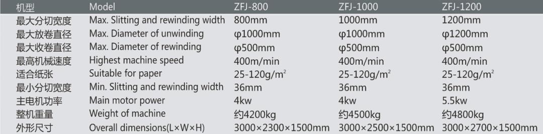 本机适用于25-120克/平方米卷筒纸张(如卷烟纸、水松纸、烟标纸及其它包装装潢用卷筒纸) 分切、复卷。